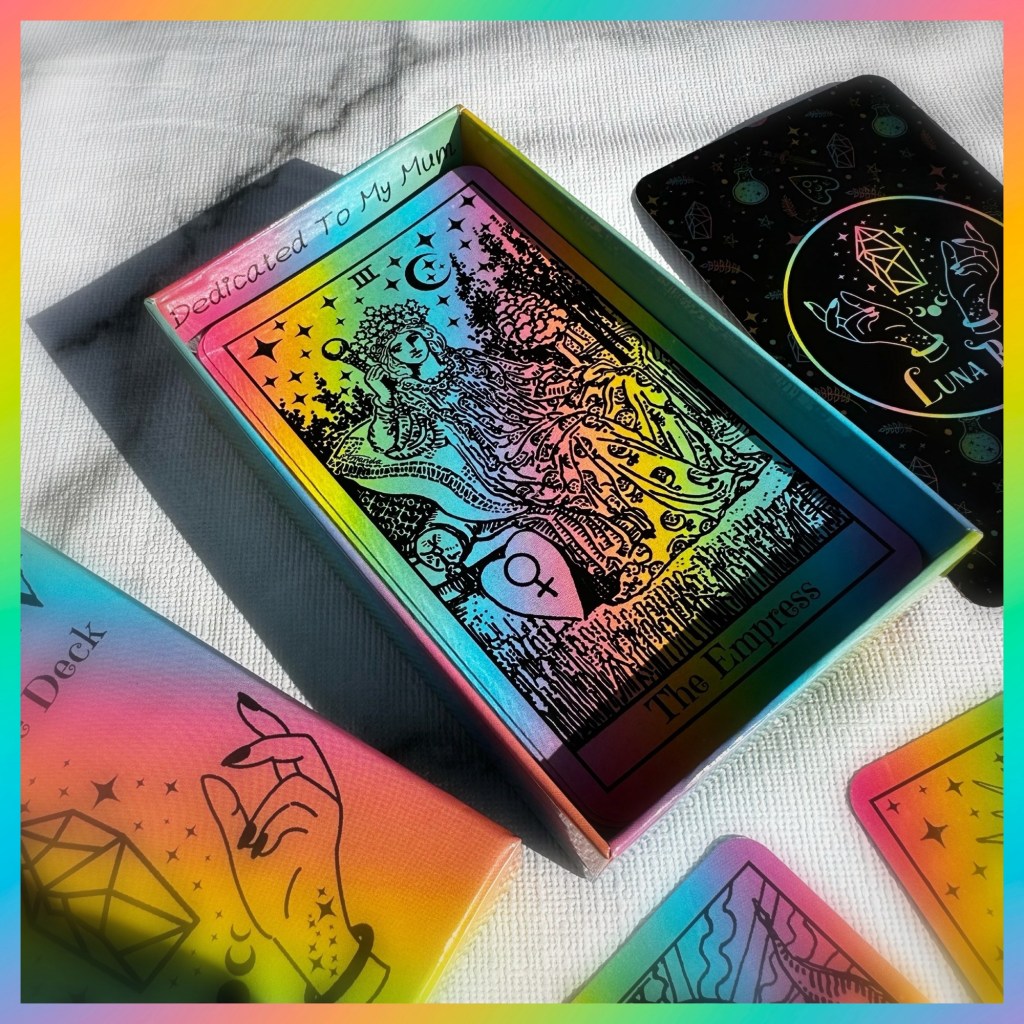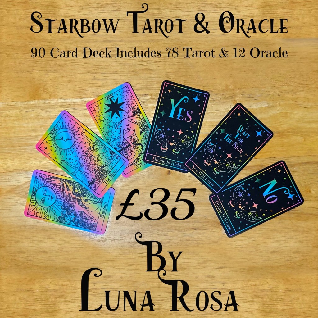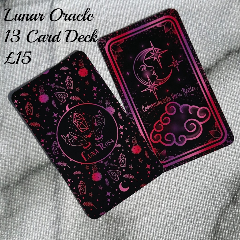 Luna also includes a set of 12 oracle cards of her own design that will compliment your tarot reading!